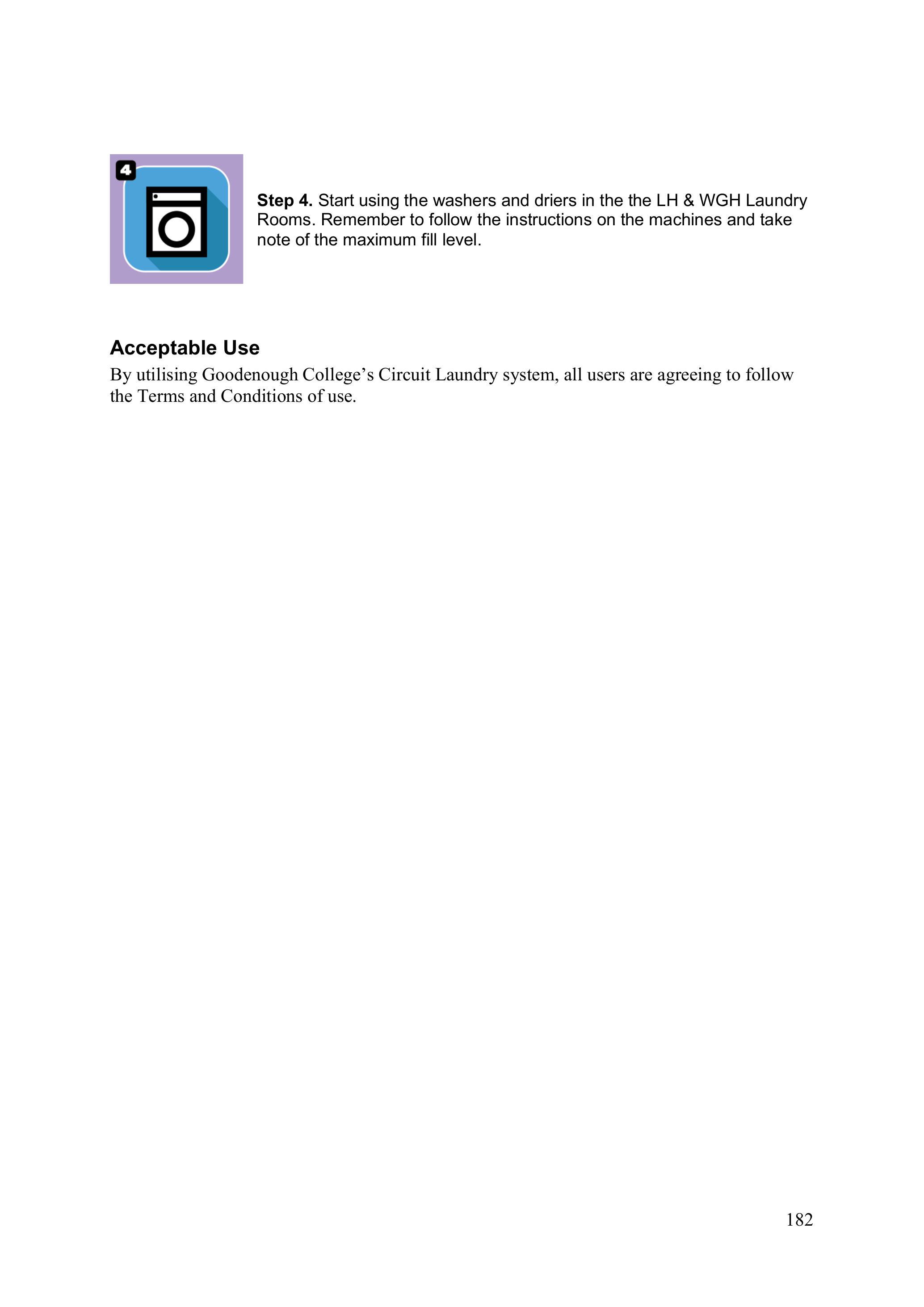By utilising Goodenough College’s Circuit Laundry system, all users are agreeing to follow the Terms and Conditions of use.