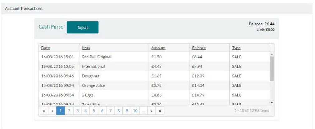 You will be returned to the Card Mgt. & Top Up page. The Top Up will now appear on your list of transactions