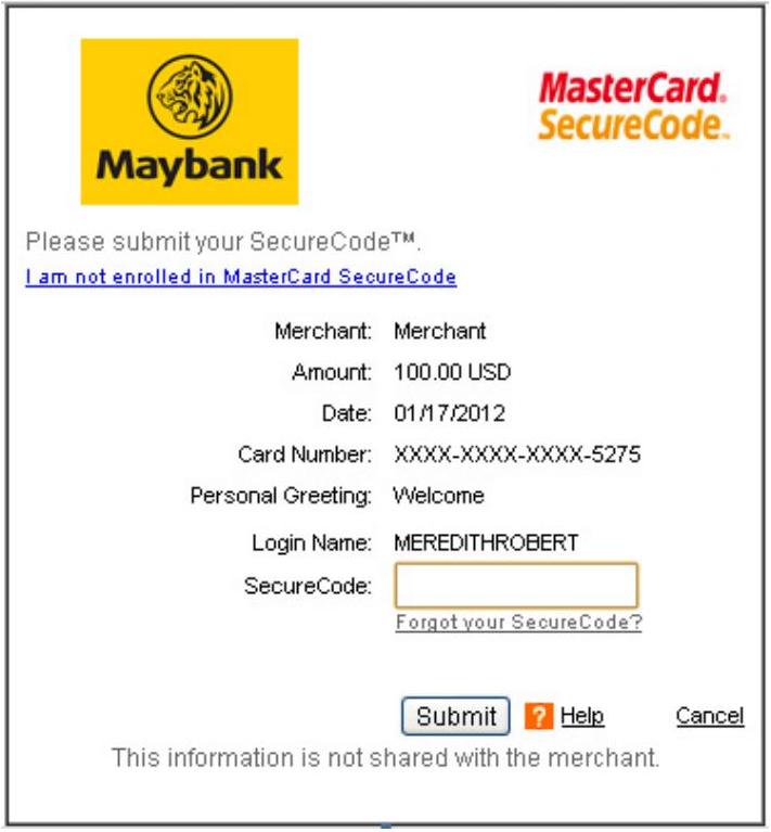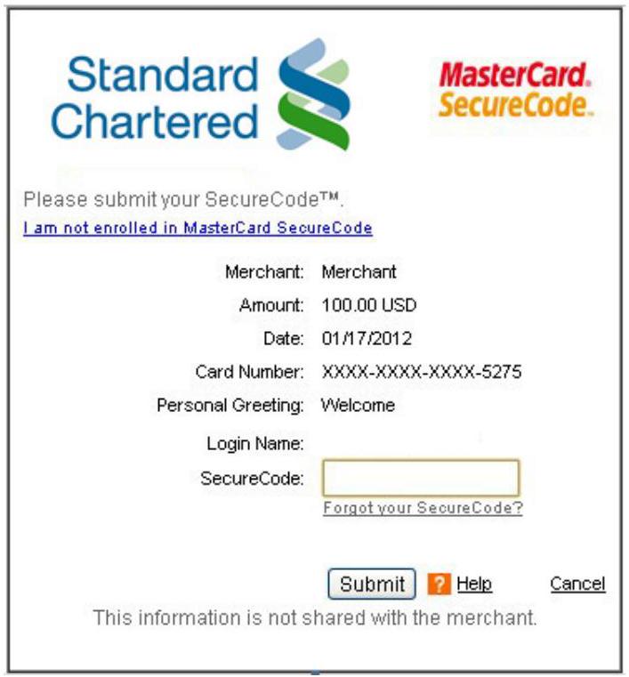 Please submit your Verified by Visa Password.