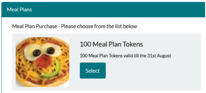 100 meal plan tokens which after purchase can be used in all breakfast, lunch and dinner services. 1 token for a set breakfast and 2 tokens for a lunch or dinner main course.