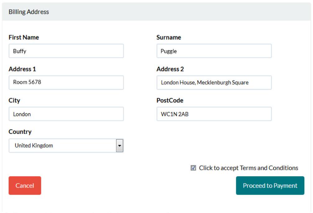 Fill in your credit or debit card’s billing address and click Proceed to Payment.