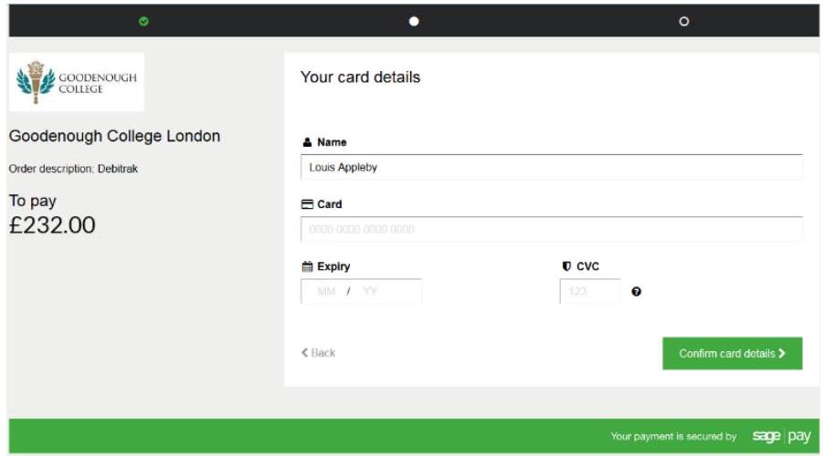 After you have made your selection, you will be taken through the payment stages where enter your card details.