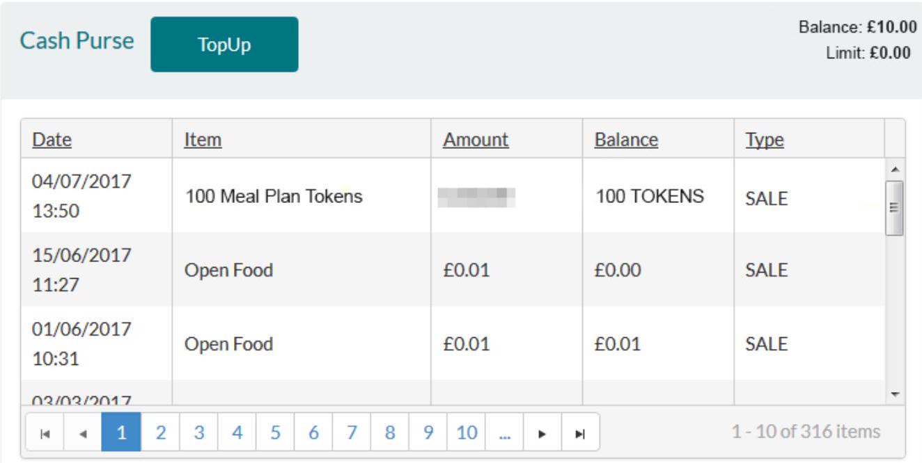 You will be returned to the Card Mgt & Top Up page. The meal plan tokens will now appear on your list of transactions and a receipt will be emailed to you.