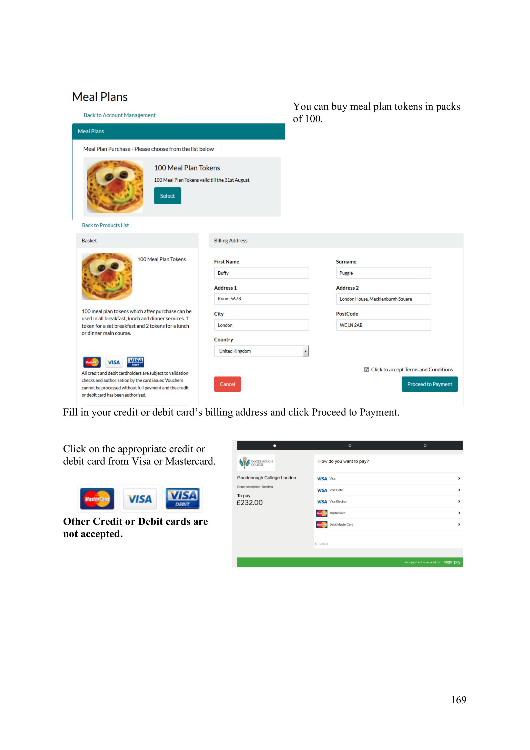 Other Credit or Debit cards are not accepted.