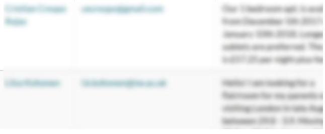 | Advert # | Room type | Price | Date From | Date To | Deadline | Name | Comments | |